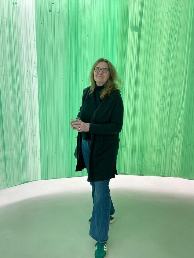 Wiebke Kramp: Ein Muss für Kunstfreunde und solche, die es noch werden wollen: Die laufende Ausstellung im Museum gegenstandsfreier Kunst zieht einen so richtig in den Bann. Sie ist cool, bunt, macht Spaß und weckt den Entdeckergeist. Mehr noch: Hier ist echte Weltklasse zu erleben. Ausgerechnet im beschaulichen Otterndorf zeigt Ruth Campau aus Dänemarks Hauptstadt Kopenhagen ihre bisher größte Einzelpräsentation in Deutschland. In ihrer Heimat zählt die Künstlerin (Jahrgang 1955) zu den ganz Großen. Sie beschäftigt sich mit Farben und Räumen und setzt sie malerisch mit meist großem Gestus in Bezug und in Szene. "Color on Brush in Space" nennt sie die Ausstellung, die zahlreiche Wow-Effekte bietet. Gleich im Erdgeschoss des Otterndorfer Museums zieht ihre große, extra für diesen Raum geschaffene Arbeit den Besucher buchstäblich in sich hinein. Diese Installation ist begehbar. Man betritt magisch wirkende Farbräume, die sich je nach Standort verändern. Zudem gerät das Material durch die Bewegung in Schwingungen. Campau-typisch sind die vertikalen Pinselstriche, die sie auf die spiralartig angeordnete Polyesterfolie mit dem Besen aufgetragen hat.