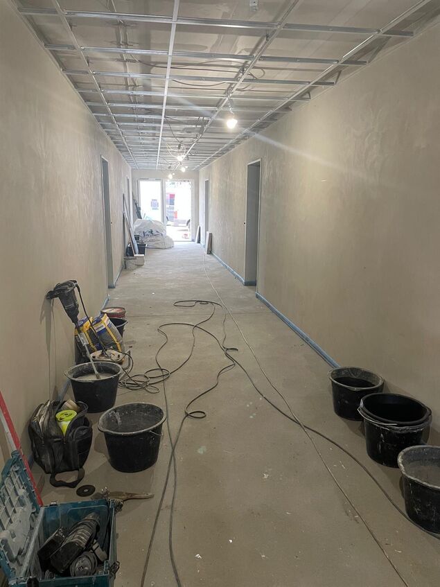 Baubeginn war im April, die Fertigstellung soll bis Ende dieses Jahres erfolgen. Gerade sind eine Handvoll Gewerke innen und außen eifrig dabei, zu hämmern, bohren, verputzen, fliesen oder Strippen zu ziehen. Das für KiK-Märkte so typische Rot am Giebel wird demnächst Geschichte sein. Mit dem Verblenden ist bereits begonnen worden.