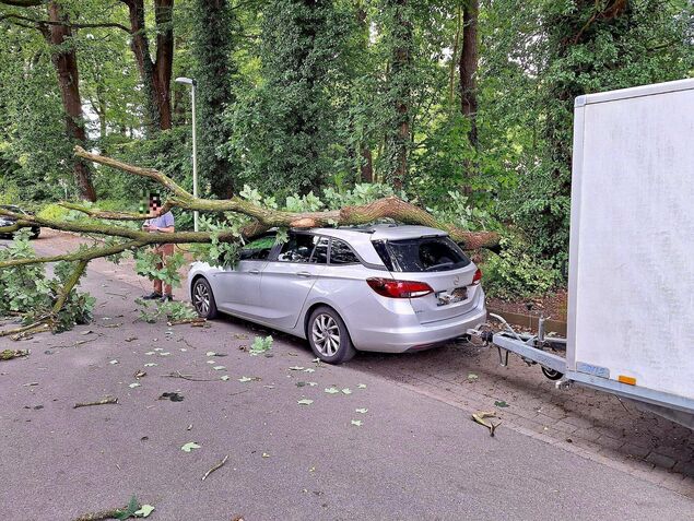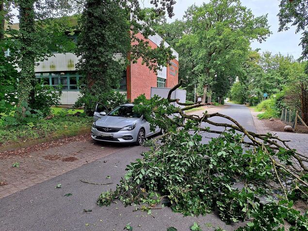 Riesenschreck in Cadenberge: Großer Ast fällt auf parkendes Auto - Fahrer in Not