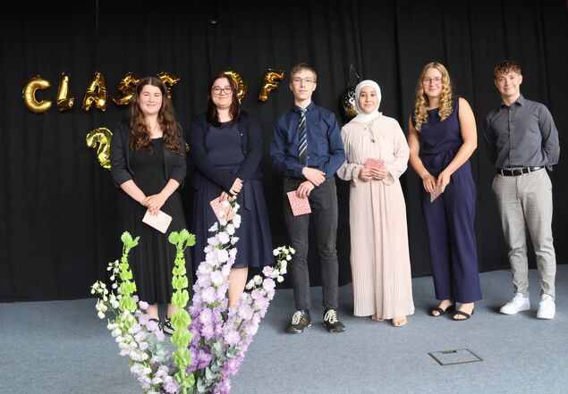 Die Jahrgangsbeste sind in diesem Jahr: Romy Winter (H9), Sara Szillat (H10), Christoph Lührs (R10a), Marim Tbich (R10b), Clara Hadeler (1,6), Tizian Engler (1,3) (G10).