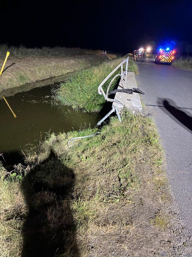 Unfall in Cadenberge: Auto prallt gegen Geländer und landet dann im Graben