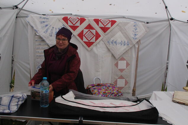 Ein undichtes Zelt, das den heftigen Schauern nicht standgehalten hatte, bremste Svenja Dee aus. "Es nützt ja nichts, ich muss die nassen Sachen jetzt nach Hause zum Trocknen bringen, damit sie keine Stockflecken bekommen", nahm die Ausstellerin aus Cadenberge das Schietwetter norddeutsch gelassen und packte am Sonnabend ihre Patchwork-Arbeiten aus altem Leinen ein.