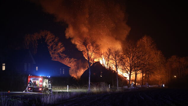 Ein verheerender Großbrand hat am Montagabend (23. März 2026) ein Wohnhaus an der Straße Laak zwischen Geversdorf und Oberndorf (Kreis Cuxhaven) vollständig zerstört. Der Feuerschein war kilometerweit sichtbar, dichter Rauch zog über die Region. Rund 85 Einsatzkräfte kämpften bis in die frühen Morgenstunden gegen die Flammen - letztlich jedoch vergeblich. Menschen kamen nicht zu Schaden. Der Sachschaden ist erheblich.