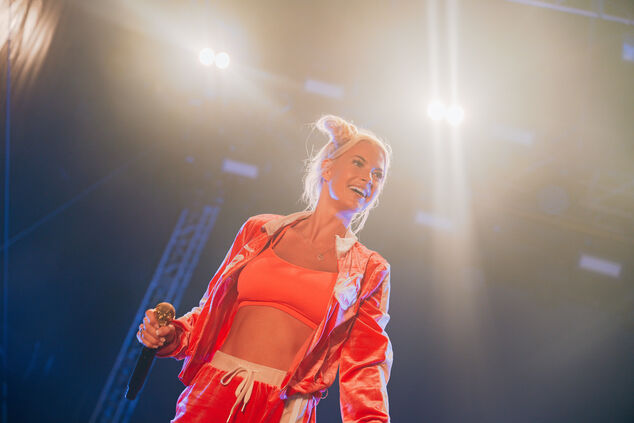 2023 trat Partyschlagersängerin Isi Glück beim Elbstrand-Festival Otterndorf auf. Im kommenden Jahr wird sie auf Krautsand auf der Bühne stehen. Foto: Elbstrand-Festival