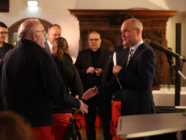 "Weihnachten und Silvester sind normalerweise festliche Tage. Für viele Helfer war das beim Winterhochwasser 2023/2024 jedoch anders", so Makel. Die Einsatzkräfte seien Tag und Nacht gefordert gewesen. "Und jetzt, zwei Jahre später, sitzen wir hier im Schloss und blicken auf eine herausragende Leistung zurück."
