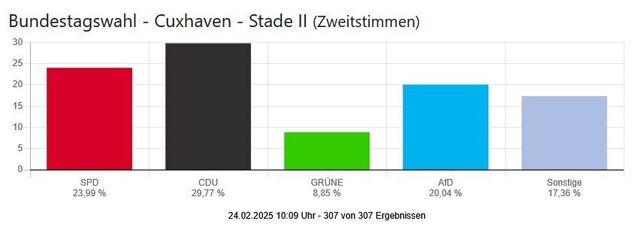Der Wahlkreis Cuxhaven-Stade II hat entschieden: Wie auf Bundesebene ist die CDU auch hier die stärkste Kraft. Das Ergebnis:
