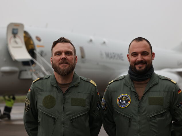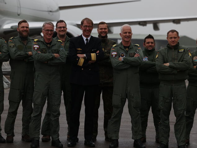 Kapitän zur See Broder Nielsen, Kommandeur des Marinefliegerkommandos, und Kapitän zur See Oliver Ottmüller, Kommodore des MFG 3 "Graf Zeppelin", waren die Ersten, die der Maschine entstiegen und dem Empfangskomitee zuwinkten. Broder Nielsen wich das Lächeln nicht mehr von den Lippen, als er als Ersten den stellvertretenden Kommodore des MFG 3, Fregattenkapitän Thomas Szczepanski, begrüßte. Auf den Fliegerkombis prangte unübersehbar das neue Patch der P-8A Poseidon mit dem Konterfei des griechischen Meeresgottes und einem Dreizack.