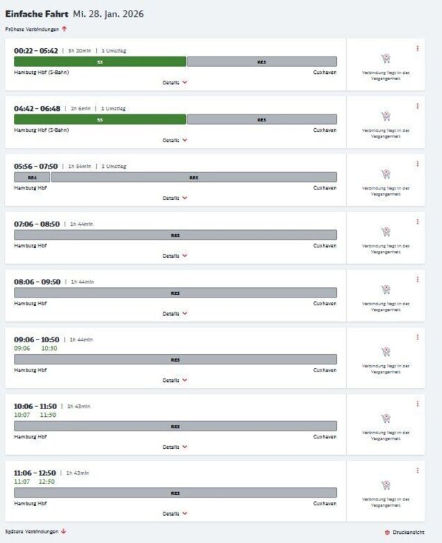 Fahrgäste auf der Bahnstrecke zwischen Hamburg und Cuxhaven mussten am Mittwochmorgen (28. Januar 2026) mit Verspätungen rechnen. Wie dem Fahrplan in der App der Deutschen Bahn (DB) zu entnehmen war, kam es zu Verzögerungen im Zugverkehr. Doch die Umstände sind dubios.