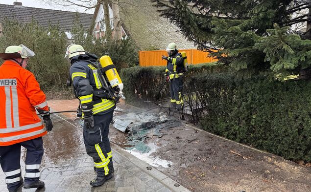 Ein Dixi-Klo ist in einer Baustelle in Hechthausen in Brand geraten. Anwohner in der Straße Im Harder entdeckten das Feuer am Freitagmittag (23. Januar 2025) gegen 13 Uhr. Als die Feuerwehr eintraf, stand das Dixi bereits in Vollbrand - und das Feuer hatte sich wegen des Windes auf ein angrenzendes Nadelgehölz ausgebreitet. Engagierte Nachbarn hatten bereits mit Löschmaßnahmen begonnen.