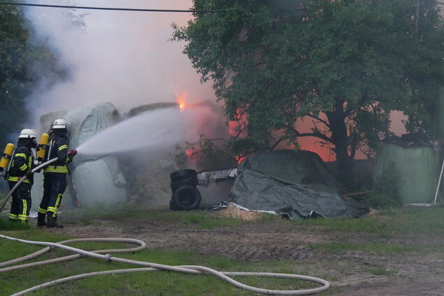 Hemmoor: Feuerwehren stundenlang im Einsatz - rund 100 Rundballen in Flammen