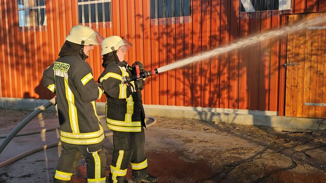 Die Übung war von Ortsbrandmeister Alexander Stach und seinem Stellvertreter Nils Waller ausgearbeitet worden. Ort war der Schweinezuchtbetrieb von Jan und Caren Dieckmann in der Sethlerhemmerstraße, wo eine große Lagerhalle auf dem Hof brennen sollte. Mehrere Personen würden vermisst werden.