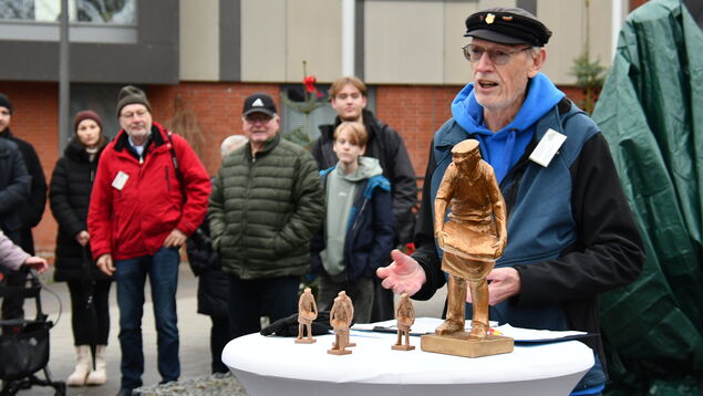 So meldete sich Harald Fritzsche aus Hemmoor bei den Ehrenamtlichen, als er von ihrem Plan erfahren hatte und er bot seine Hilfe an. Er sagte nur - so Rainer Kupke (Vorsitzender des Geschichts- und Heimatvereins) -, ganz einsilbig, entschlossen und zurückhaltend, dass er dem Verein wohl bei diesem Projekt helfen könne. Doch das war stark untertrieben, denn was Fritzsche geleistet hat, wurde unter großem Applaus am Freitag auf dem Rathausplatz enthüllt. Der Zementpacker kam, als ob er nie verschwunden gewesen wäre.