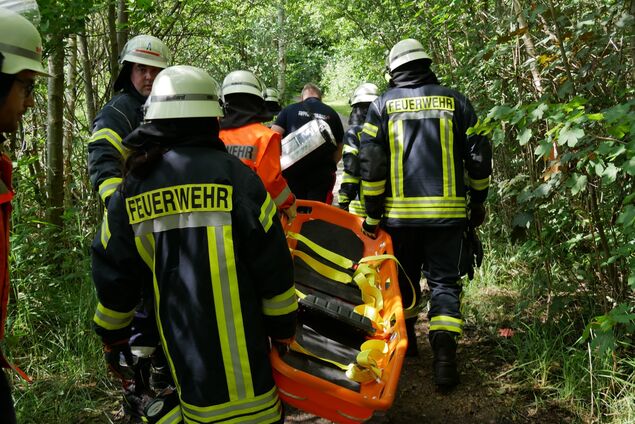 Schnell wurden die Rettungskräfte über ein Notfalltelefon zum Kreidesee an den Einstieg fünf alarmiert. Da dieser Bereich über eine schlechte Wegstrecke erreichbar war, wurde die Feuerwehr Althemmoor umgehend zur Tragehilfe angefordert.