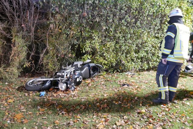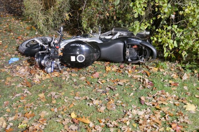 Am frühen Sonnabendmorgen (25. Oktober 2025) gegen 4.10 Uhr ist ein 27-jähriger Motorradfahrer aus der Wingst auf der K21 zwischen Hemmoor und Oberndorf schwer verunglückt. Der Fahrer einer Suzuki kam eingangs einer scharfen Rechtskurve vermutlich infolge überhöhter Geschwindigkeit nach links von der Fahrbahn ab, durchquerte den Grünstreifen knapp an einem Verkehrsschild vorbei, stürzte und blieb nach rund 50 Metern in einer Hecke liegen.