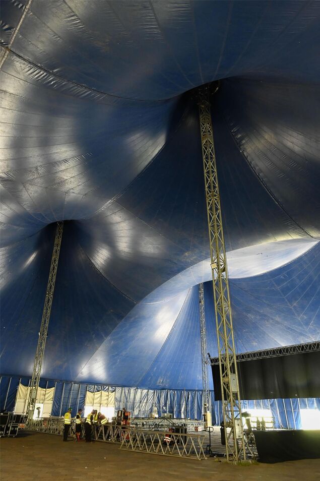 Am Freitag startet die Großveranstaltung mit viel Musik und mit noch mehr Besuchern. Die "Forest Stage", die die meisten nur "grüne Bühne" nennen, steht schon, die blaue nebenan liegt noch am Boden, von der roten nichts zu sehen. Der Kicker in der zweistöckigen Platin-Lounge steht dagegen schon, die Getränkeverkaufswagen sind bereits mit Kühlschränken bestückt, die Tafeln mit den Preisen und Jugendschutzverordnung kleben schon und auch das Sechsmaster-Zelt mit der White Stage und das Riesenrad ragen weit über der Fläche empor.