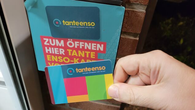 Ich hole meine Tante-Enso-Karte aus dem Portemonnaie. Sie ist mein "Sesam öffne dich!" für die Eingangstür. Zugeschickt bekommen hatte ich das EC-Karten-große Ticket, nachdem ich auf der "Tante Enso"-Webseite ein Formular mit meiner Adresse und den Kontodaten ausgefüllt hatte. Zehn bis 14 Tage dauert es von der Bearbeitung bis zum Versand.