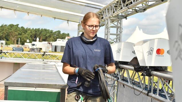 Die Tage vor dem Festivalbeginn sahen für Olze so aus: Viertel nach sieben aufs Gelände fahren, frühstücken, ab halb neun mit ihren Aufgaben starten. Mittagspause. Danach bis 18.30 Uhr weiterarbeiten und dann ging es wieder zurück zur Unterkunft. Drei Mahlzeiten am Tag und die Unterbringung sind bei dem Job mit drin. Angestellt ist sie bei HKES, ein Dienstleister der Veranstaltungsbranche aus Norddeutschland, mit Büros in Hamburg, Leipzig und Offenburg sowie Lager- und Logistikstandorten an der Wurster Nordseeküste.