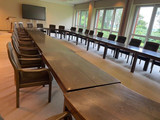 Die Ausstattung im großen sowie kleinen Sitzungssaal im Kreishaus Cuxhaven ist zwar höchst gediegen mit viel Massivholz, aber mittlerweile deutlich in die Jahre gekommen. Kein Wunder: Es ist immer noch die Ersteinrichtung - sie stammt aus dem Jahr 1984 und ist also 41 Jahre alt. Nun wird aufgemöbelt - und dies buchstäblich. Während das hochwertige Holz die Zeit hervorragend überstanden hat, sind andere Macken und Mängel offensichtlich.