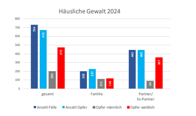 Ein besonders besorgniserregender Trend ist jedoch der Anstieg häuslicher Gewalt: 2024 wurden 734 Fälle verzeichnet, 75 mehr als im Vorjahr.