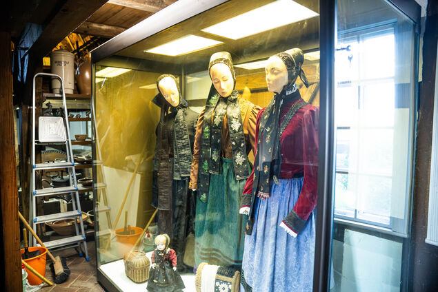 Doch vor allem die Trachten erfahren im Bördemuseum eine besondere Präsentation. Sie sind der eigentliche Aufhänger der Ausstellung, denn Lamstedt galt als eine der entscheidenden Trachtenhochburgen im Elbe-Weser-Land, zu dem auch Selsingen, Scheeßel und das Alte Land gehörten. Die Trachten dienten unter anderem dazu, die eigentliche Armut der Börde zu kaschieren. "Deshalb sind sie auch so schön geschmückt und gestaltet. Außerdem machen sie keinen Unterschied zwischen Arm und Reich." So entstand Zusammenhalt und es gab kaum Standesunterschiede. "Damals saßen die Hofbesitzer auch mit den Knechten an einem Tisch", weiß der Museumsleiter.