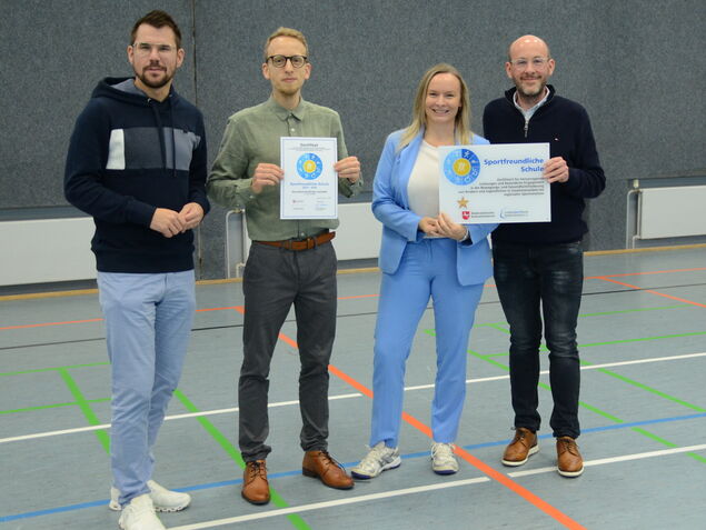 Dazu waren die Kinder der Grundschule Börde Lamstedt mit ihren Lehrerinnen und Lehrern in die Halle gekommen. Denn sie hatten zweierlei zu feiern. Erstens: Dass sie die Bernhard-Riemke-Halle, die ehemalige Grundschul-Sporthalle, nun wieder nutzen und darin Sport treiben können. Zweitens: Die Auszeichnung als "Sportfreundliche Schule", die zum wiederholten Mal vom Niedersächsischen Kultusministerium für "hervorragende Leistungen und besonderes Engagement in der Bewegungs- und Gesundheitsförderung" vergeben wurde. Schulleiter Malte Stoffel präsentierte voller Stolz die Plakette und die Urkunde, die schwarz auf weiß den außerordentlichen Einsatz der Schule, der auch die Förderung gesunder Ernährung mit einschließe, belegt.