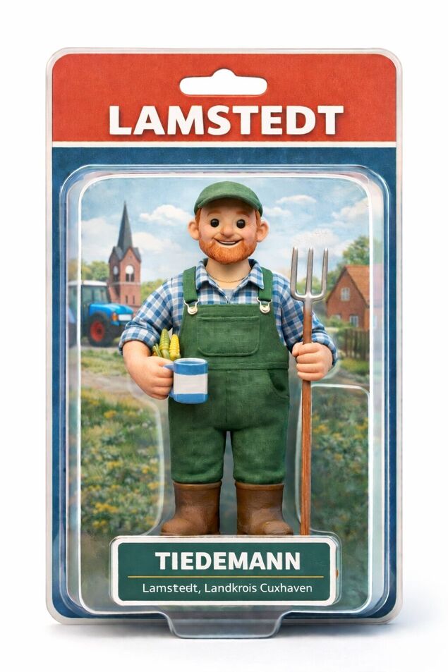 Zum Schluss noch eine Spielerei: Wir wollen wissen, wie ein typischer Lamstedter wohl als Actionfigur aussehen würde. Die Redaktion greift dabei einen Trend in den sozialen Netzwerken auf, sich selbst oder andere Menschen als stilisierte Actionfigur, verpackt in eine Plastikhülle, darzustellen. Das Ergebnis: eine Landwirt-Figur mit Mistgabel und Tasse in der Hand, die bezeichnenderweise den Namen "Tiedemann" trägt - ein häufiger Familienname in der Börde Lamstedt.