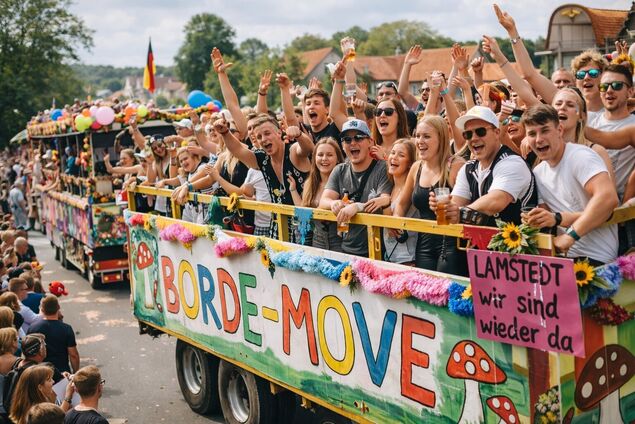 Kann ChatGPT auch Partyfotos kreieren? Wir haben die Künstliche Intelligenz aufgefordert, ein Bild vom Lamstedter Börde-Move, dem Höhepunkt des jährlichen Bartholomäus-Marktes, zu gestalten. Das Ergebnis ist gleichermaßen beeindruckend wie beängstigend: Ein Laie wird kaum erkennen, dass es sich bei der Wagenparade um eine künstlich erzeugte Bilddatei mit nicht existierenden Menschen handelt. Kleiner Schönheitsfehler: Die KI hat die Ö-Punkte bei "Börde" vergessen.