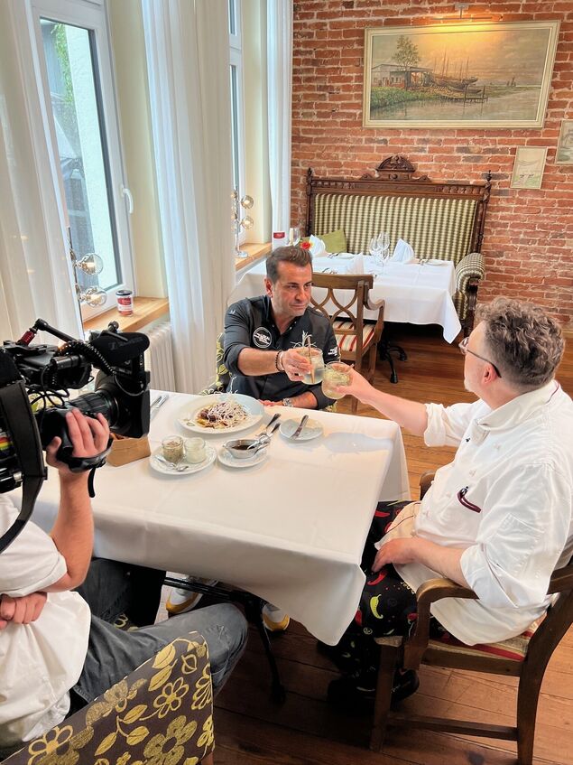 Die Dreharbeiten mit dem Produktionsteam und TV- und Sternekoch Ali Güngörmüs, der die Lokale stets vorab besucht und am Ende die entscheidenden Punkte vergibt, beschreibt Claus Peter als "sehr angenehm und wertschätzend". Güngörmüs sei ein echter Profi mit klaren Vorstellungen. "Man merkt sofort, dass er sehr handwerklich geprägt ist, da sprechen wir die gleiche Sprache." Er habe dem TV-Koch sogar etwas Neues zeigen können - das Räuchern mit Tee. Insgesamt habe beim Dreh in den Restaurants eine "gute Stimmung" geherrscht.