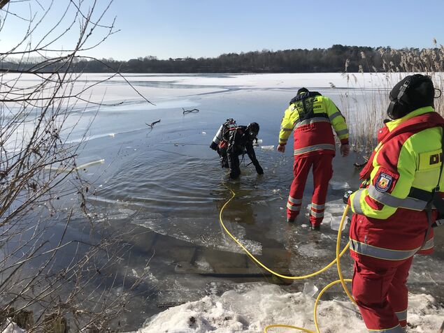 Gerade weil es in der Region selten vorkommt, dass Gewässer mit einer entsprechend dicken Eisdecke bedeckt sind, ist die DLRG bestens auf Notfälle und Eisrettungen vorbereitet. Zur Standardausrüstung aller Wasserrettungseinheiten gehört ein Kälteschutzanzug. "So haben die Retter einen trockenen Anzug, wenn sie einbrechen würden, sodass sie trocken und warm bleiben. Außerdem sind unsere Retter im Einsatz immer angeseilt, damit sie im Notfall zurückgezogen werden können", schildert Laudien.