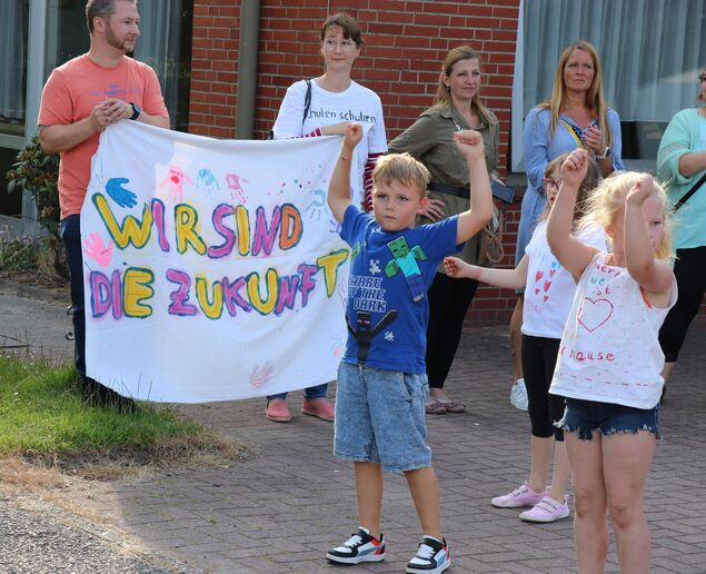 Vor ein paar Tagen hatten sie noch Unterschriften an den Samtgemeindebürgermeister übergeben. Vor der Ostehalle in Geversdorf demonstrierten nun Kinder und Eltern mit Plakaten und Tänzen gegen die geplante Schließung "ihrer" Schule. Doch alle Proteste halfen nichts: Mit 24 Ja- und neun Gegenstimmen besiegelten die Mitglieder des Samtgemeinderates das Aus der Hinrich-Wilhelm-Kopf-Schule in Neuenkirchen und Nordleda. Trotz der scharfen Kritik endet damit eine lange Schultradition an diesen Standorten - in Neuenkirchen sind es 94 Jahre.