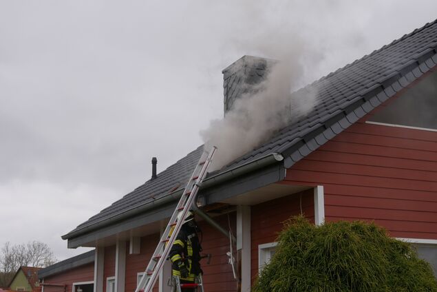 Da inzwischen direkt neben dem Schornstein dichter Rauch aus dem Dach sichtbar wurde, mussten einige Dachpfannen ebenfalls entfernt werden, um an die vorhandenen Glutnester zu gelangen. Nach etwa zwei Stunden meldete Einsatzleiter Frank Lund "Feuer aus". Nun kontrollierte die Feuerwehr das gesamte Gebäude mit einer Wärmebildkamera auf erhöhte Temperaturen, um sicherzugehen, dass keine weiteren versteckten Glutnester vorhanden sind.