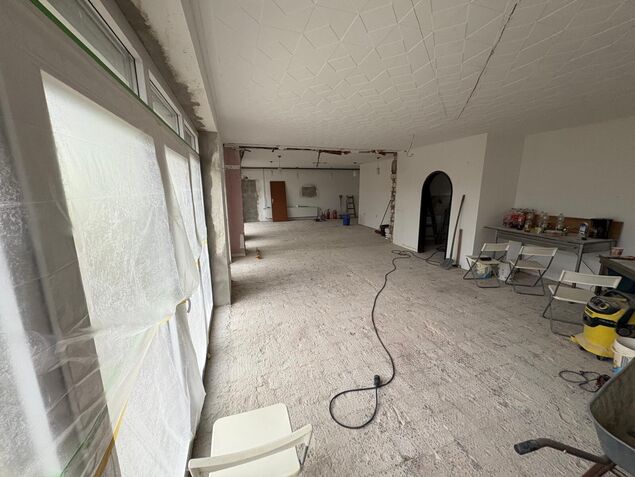 Noch ist die Adresse mehr Baustelle als Gastraum. Es wird gesägt, gefliest, verkabelt, geschleppt. Seit rund sieben Wochen sind Grade und Packwitz nach dem Saisonende in Duhnen täglich vor Ort. Wände wurden versetzt, Durchbrüche geschaffen und Anschlüsse vorbereitet. Auch beim Mobiliar setzen sie auf Eigenleistung: große Tresen- und Tischflächen aus Holz, die sie aus einem Baum herausgearbeitet und gehobelt haben.