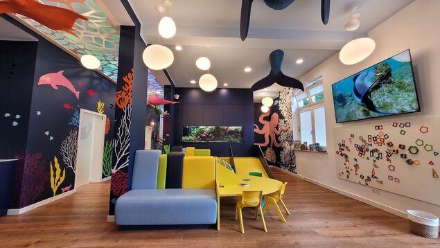 Als Michael Scheel im Spätsommer 2023 seine neue Kinderarztpraxis im ländlich gelegenen Nordholz eröffnete, war klar, dass er dort als Kinderarzt nicht allein bleiben wollte. Um Kollegen aus allen Teilen der Republik anzusprechen, hatte er eine Erlebnispraxis entworfen, die wie ein Kinder-Paradies unter dem Meer anmutet.