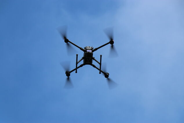 Da schwebt sie also, 120 Meter über dem Boden. Aus dieser Höhe nimmt die Drohne mit dem klangvollen Namen Matrice 300 RTK Luftbilder auf, die ein Computer dann später zu einem 3D-Modell der Landschaft zusammenfügen soll. Das Ergebnis, im Fachjargon Orthofoto genannt, kann sich der Laie so ähnlich wie Satellitenaufnahmen von "Google Maps" vorstellen. "Nur viel genauer", erklärt Markus Hülsen, Drohnenspezialist beim Landesamt für Geoinformationen und Landesvermessung Niedersachsen (LGLN), während er das Fluggerät bei schönstem Wetter über die Felder und Gräben von Nordleda schweben lässt.