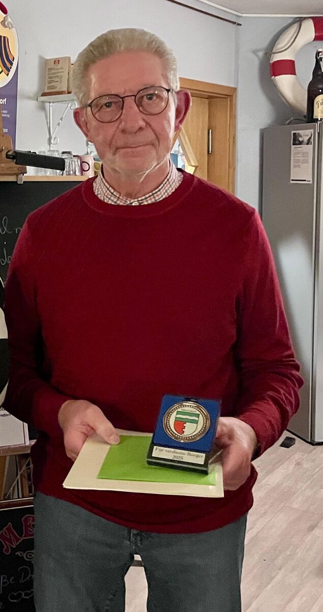 Als erstes wurde Achim Tamm ausgezeichnet. Mit 14 Jahren trat er dem Bentwischer Schützenverein bei und wurde bereits nach acht Jahren zum Schützenkönig. Seit inzwischen 57 Jahren ist er im Verein aktiv. Er war zudem in der Feuerwehr als Gruppenführer und zeitweise als Ortsbrandmeister tätig. Nach dem Ende dieser Ämter trat er dem Aufsichtsrat der Genossenschaft "Die Oberndorfer eG" bei und engagiert sich dort sowie auch als Vorsitzender im Verein der Heimatfreunde Oberndorf. "Das ist eine außergewöhnliche Leistung, auf die Du stolz sein kannst", sagte Cunow.