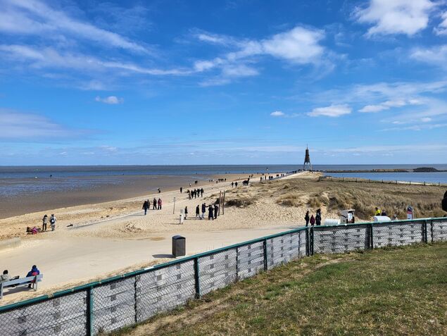 Bereits ab Karfreitag in Cuxhaven war an der Strandpromenade einiges los. Strahlender Sonnenschein und blauer Himmel lockten zahlreiche Menschen nach draußen zu einem Spaziergang. Sowohl auf dem Deich als auch auf der Strandpromenade war zwischen Duhnen und Döse viel Betrieb. Einige nutzten das Wetter auch für einen Spaziergang zur Kugelbake. Zwar wehte der Wind tüchtig, aber die Sonnenstrahlen entschädigten für die frischen Brisen.
