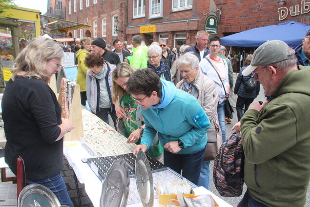 Die Händler hatten an diesem Sonntag sichtbar alle Hände voll zu tun, den Kunden ihre Wünsche zu erfüllen. Viele Anbieter hatten sich aus Otterndorf und der Region hierher auf den Weg gemacht, aber manche kamen auch von etwas weiter her. "Das ist sehr gut organisiert", lobte ein Hamburger, der hier das erste Mal seine Senfspezialitäten verkaufte. An der Standvielfalt beteiligten sich auch einige Otterndorfer Läden, die an diesem verkaufsoffenen Sonntag einen Teil ihres Geschäftes nach draußen vor die Tür verlagert hatten.