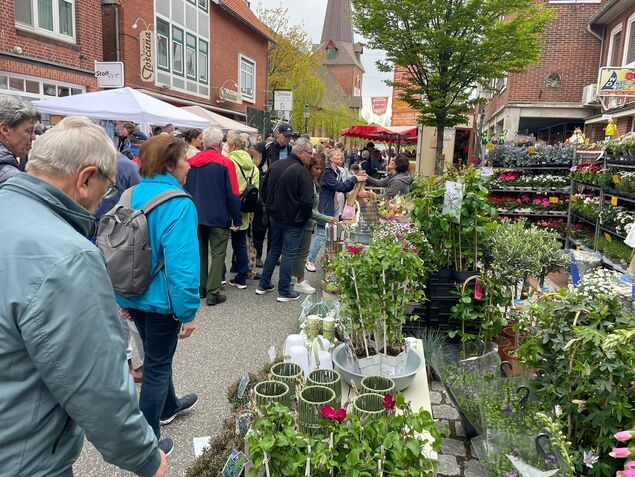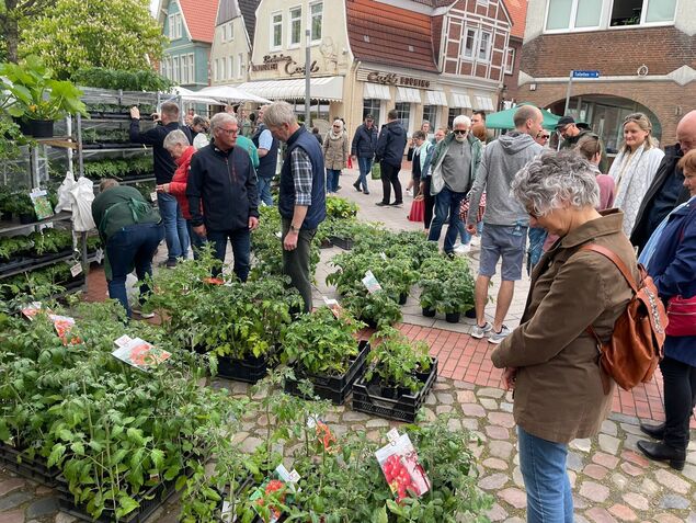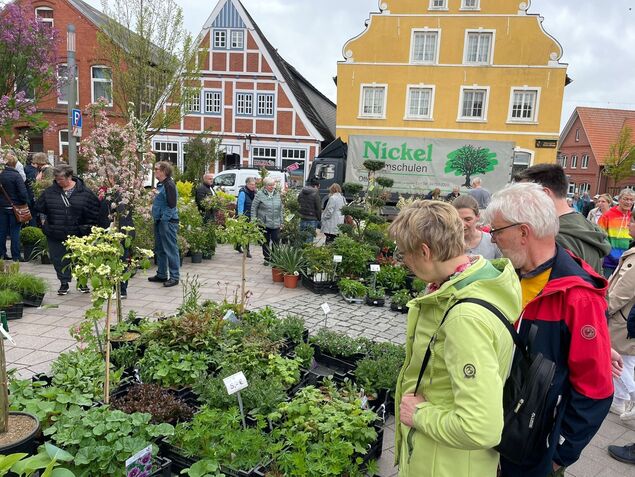 Der Bauernmarkt mitten in Otterndorfs historischer Altstadt erwies sich Sonntag einmal mehr als Besuchermagnet. Gute Laune war hier Trumpf. Von Beginn am Vormittag an bummelten die Besucherinnen und Besucher von Stand zu Stand und genossen sichtbar das breite Angebot von Grün bis Bunt: Beetpflanzen, frische Kräuter, Obst oder Gemüse sowie Deko und Gerätschaften für Haus, Hof und Garten wurden hier angeboten. Und so manche Spezialitäten konnten sogar probiert werden: vom Käse aus Allgäu bis zur Bauernmettwurst.