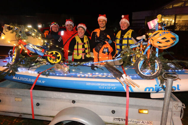 Auch der Nikolaus war beim Fackelschwimmen dabei