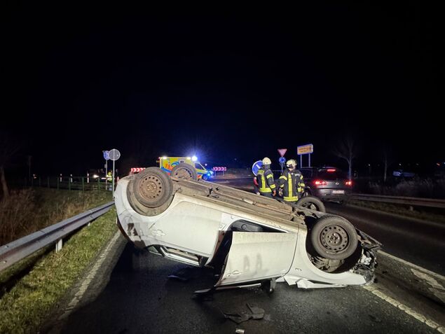 Am Heiligabend (24. Dezember) gegen 22 Uhr ist es auf der B 73 am Kreisel Scholienstraße zu einem schweren Verkehrsunfall gekommen. Ein Pkw überschlug sich und blieb auf dem Dach liegen. Der Fahrer wurde verletzt und in ein Krankenhaus gebracht.