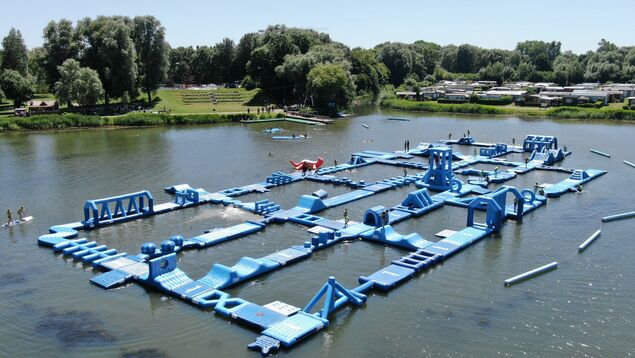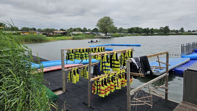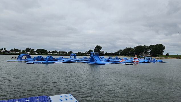 Wie ich später feststelle: Der Aquapark ist mein persönliches Highlight auf der Anlage. Die Schwierigkeit: Beim Drüberlaufen bewegen sich die Teile, über die ich mich bewege. Besonders soll ich bei den Verbindungsstücken der Einzelmodule aufpassen, da man hier nicht so gut abgefedert werde, rät Reimers. Und wenn ich mal seitlich herausfallen sollte, dann eher mit dem Gesäß, da das Wasser hier nur einen Meter tief ist. Neben den Neoprenanzügen bekommt jeder Gast eine passende Schwimmweste.