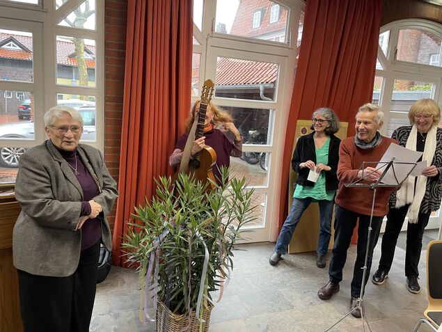 Wie weit ihr ehrenamtliches Engagement reicht, wofür sie steht und kämpft, wurde im Anschluss in zahlreichen persönlichen und schriftlichen Grußadressen deutlich. Sie zeichneten das Bild einer aktiven, unterstützenden, selbstlosen, mutmachenden und zuverlässigen Frau mit Haltung und Rückgrat. Dr. Gisela Pentekers Stimme findet Gehör. In Otterndorf sowieso, aber auch in Hannover, Brüssel oder Diyarbakir in der Türkei, wo sie als erste Ausländerin für ihr humanitäres Engagement ausgezeichnet wurde.