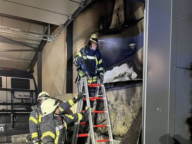 Sie fanden eine brennende Mülltonne in einer Blechhalle, in der mehrere Wohnmobile zur Wintereinlagerung standen. An einem der Fahrzeuge entstand durch die enorme Hitze leichter Schaden.