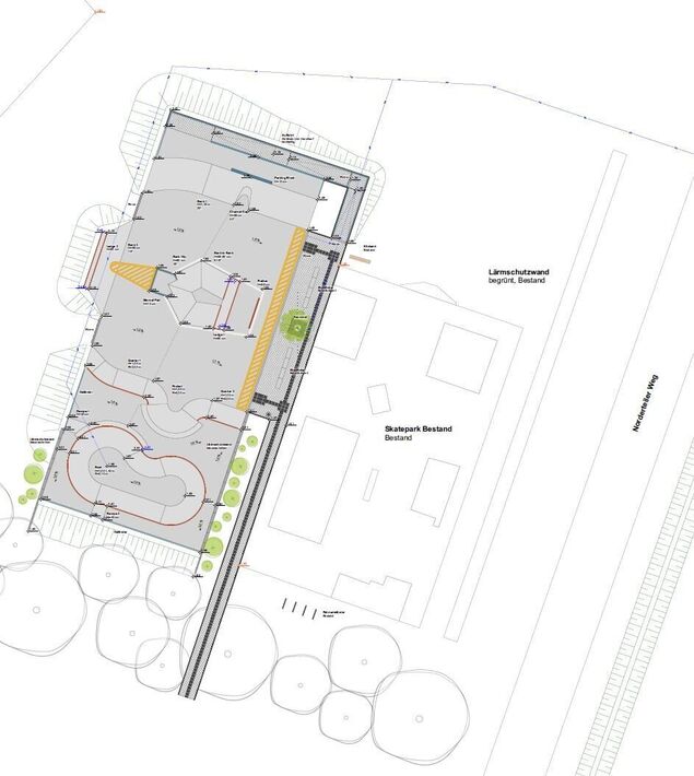 Der Entwurf für den neuen Otterndorfer Skatepark kommt vom Kölner Planungsbüro Landskate GmbH. Die Planung sieht vor, hinter dem bestehenden Skatepark eine komplett neue Anlage mit vielen Obstacles - das sind Rampen und Hindernisse, die der Hobby-Sportler befährt - zu errichten. Herzstück der Anlage wird eine sogenannte Bowl sein, ein in den Boden eingelassenes Becken, das viele akrobatische Tricks erlaubt. Als weitere Elemente sind unter anderem Quarter-Pipes, eine Flat-Bar, ein Manual Pad und zwei Ledges geplant. Natürlich wird es auch viele Sitzmöglichkeiten geben.