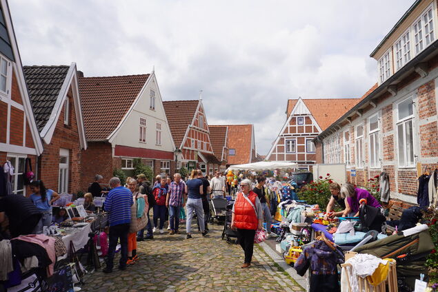 Nach der offiziellen Eröffnung war die Bummelmeile in der Johann-Heinrich-Voß-Straße und im Himmelreich bereits gut besucht - trotz noch grauer Wolken am Himmel. Vereine luden zu Mitmachaktionen ein, und Flohmarktstände boten eine bunte Auswahl: von Kinderspielzeug und Gartendeko über Kleidung bis hin zu kleinen Schätzen für Liebhaberinnen und Liebhaber von Antiquitäten.