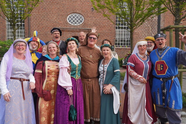 Auch aus der Partnerstadt Penzlin waren Gäste zum Stadtjubiläum angereist. Bettina Hellersen, Volker und Leona Hellmann, Silvio und Sylvia Freude sowie Michael und Sibille Baaß verbrachten mehrere Tage in Otterndorf. Beim Festumzug waren sie mit einem Wagen der Partnerstadt vertreten - stilecht in mittelalterlicher Gewandung samt Hofnarr.