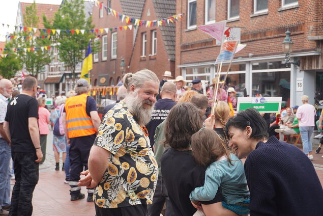 Auch in den weiteren Eröffnungs- und Grußworten spiegelte sich der Aufruf zur Gemeinschaft wider. Bürgermeister Claus Johannßen berichtete über Etappen aus der Otterndorfer Geschichte. Sein Dank galt an diesem Höhepunkt des Jubiläumsjahrs den zahlreichen Haupt- und Ehrenamtlichen, die dieses Stadtfest und alle anderen Jubiläumsveranstaltungen vorbereitet hatten.