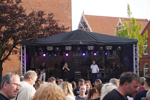 Schon beim Soundcheck der Band "Aquacity" wurde getanzt. Zahlreiche Smartphones wurden gezückt, als die Gruppe Miley Cyrus' "Flowers" interpretierte. Die Band mit der "Party-Mission", wie sie sich selbst nennt, suchte den direkten Draht zum Publikum - und bescherte dem Stadtfest einen ausgelassenen Ausklang.