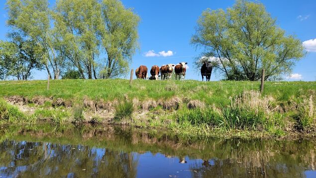 Die Baumwurzeln an den Ufern, an denen die Paddler vorbeiziehen, sehen aus wie aus einem Mangrovenwald hierhin gepflanzt - die Paddler fühlen sich an die Everglades in Florida erinnert. Dann auf der linken Seite ein paar Wochenendhäuser, neugierige Kühe, ansonsten nichts als üppiges Grün zu beiden Seiten der schmalen Medem.