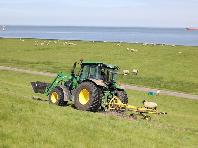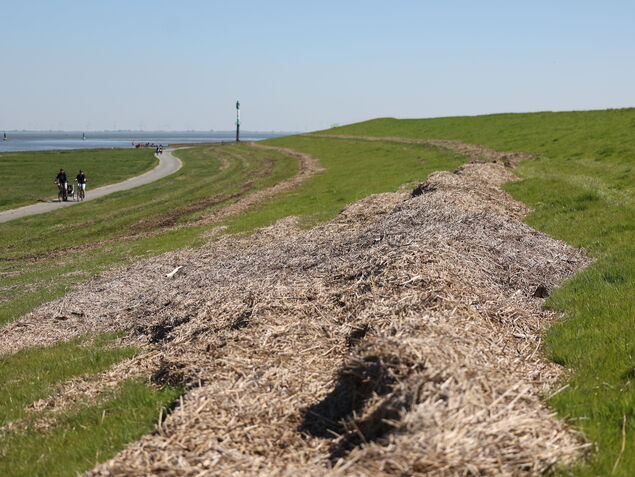 "Das Treibselaufkommen war in diesem Jahr besonders hoch. Wegen der starken Niederschläge hatten wir bisher keine Möglichkeit, es zu entfernen. Erst vor wenigen Tagen konnten wir zum ersten Mal mit schwerem Gerät auf den Deich fahren. Vorher hätten wir damit die Grasnarbe zerstört", erklärt Heitmann.